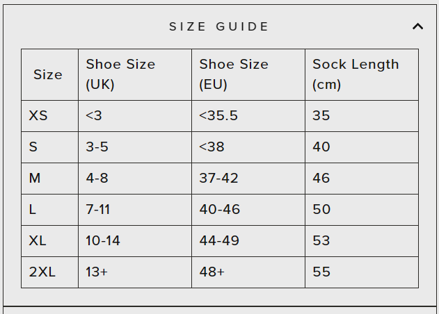The deadlift sock sizing is based on shoe size and preferred sock length, which can be measured from the floor up to the top of your shin. Choose a size that suits both measurements.
