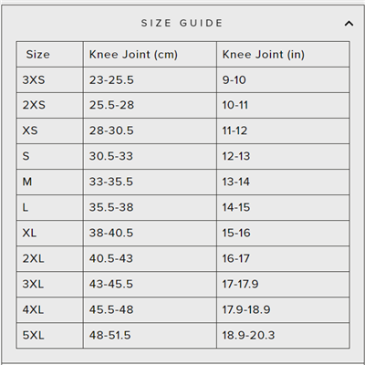 Measure the circumference of your knee joint with your leg out straight, keeping your muscles relaxed. Measure around the centre of your kneecap (at the patella), and around the thickest part of your calf. If your calf is more than 4cm (1.6in) larger than your knee, then you may wish to size up to ensure a good fit.